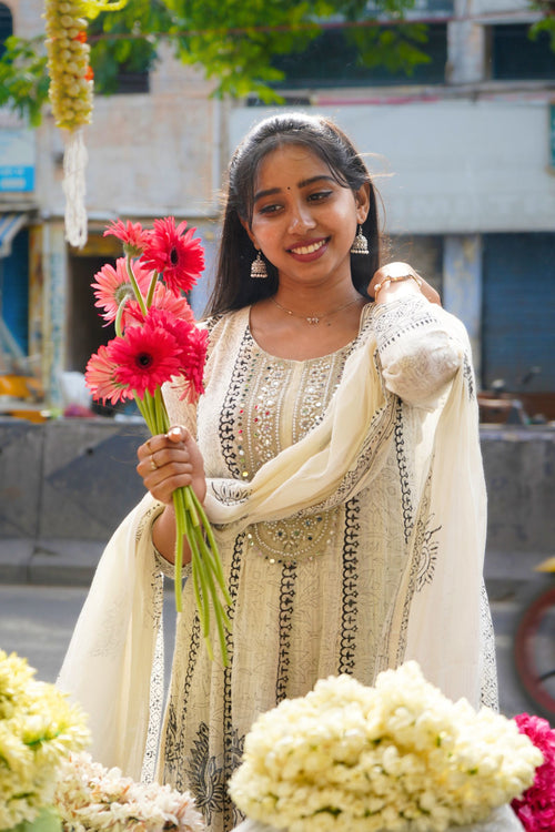 Crafted from pure Mangalagiri cotton, Agnika blends traditional charm with everyday comfort. The zari borders, sleeveless, and hemline add a subtle touch. Lightweight, breathable, and elegant — perfect for daily wear, temple visits, or festive gatherings.